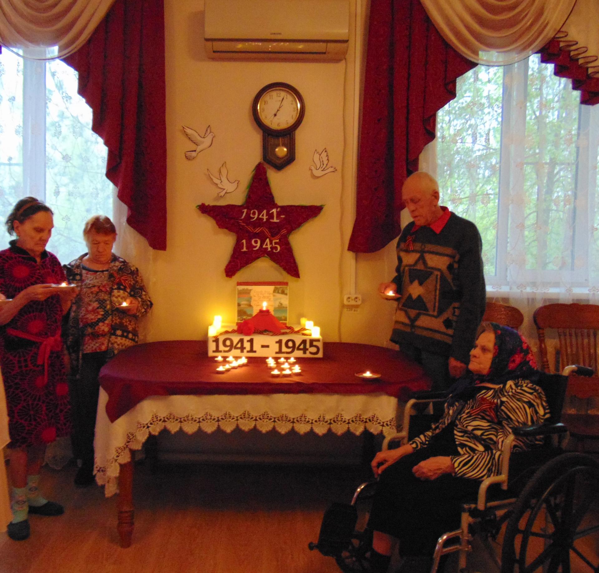 Вечером в 19:00 мск проживающие почтили светлую память  погибших  минутой молчания и зажгли свечи -  в память  об ушедших героях, чей бессмертный подвиг никогда не будет забыт.