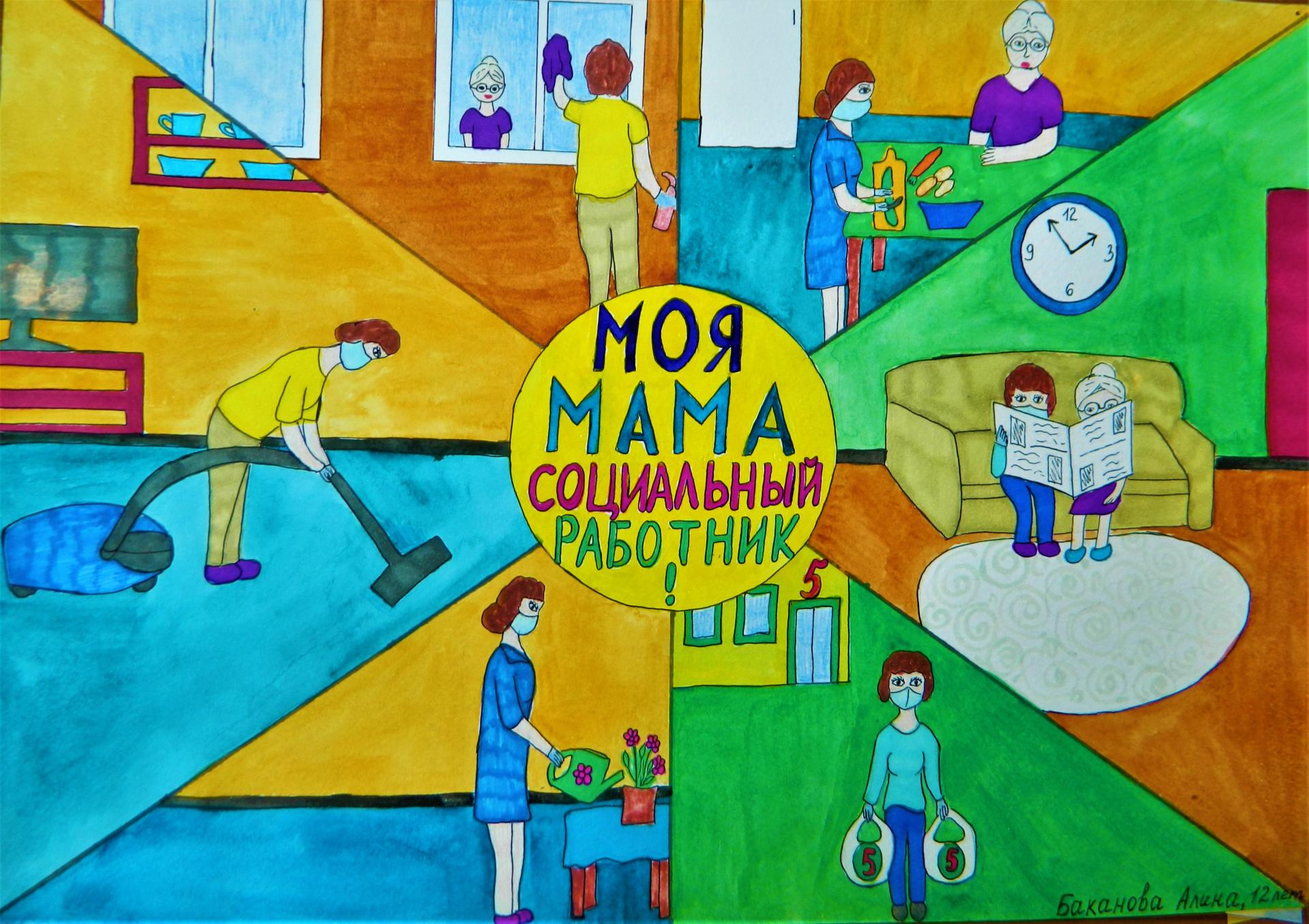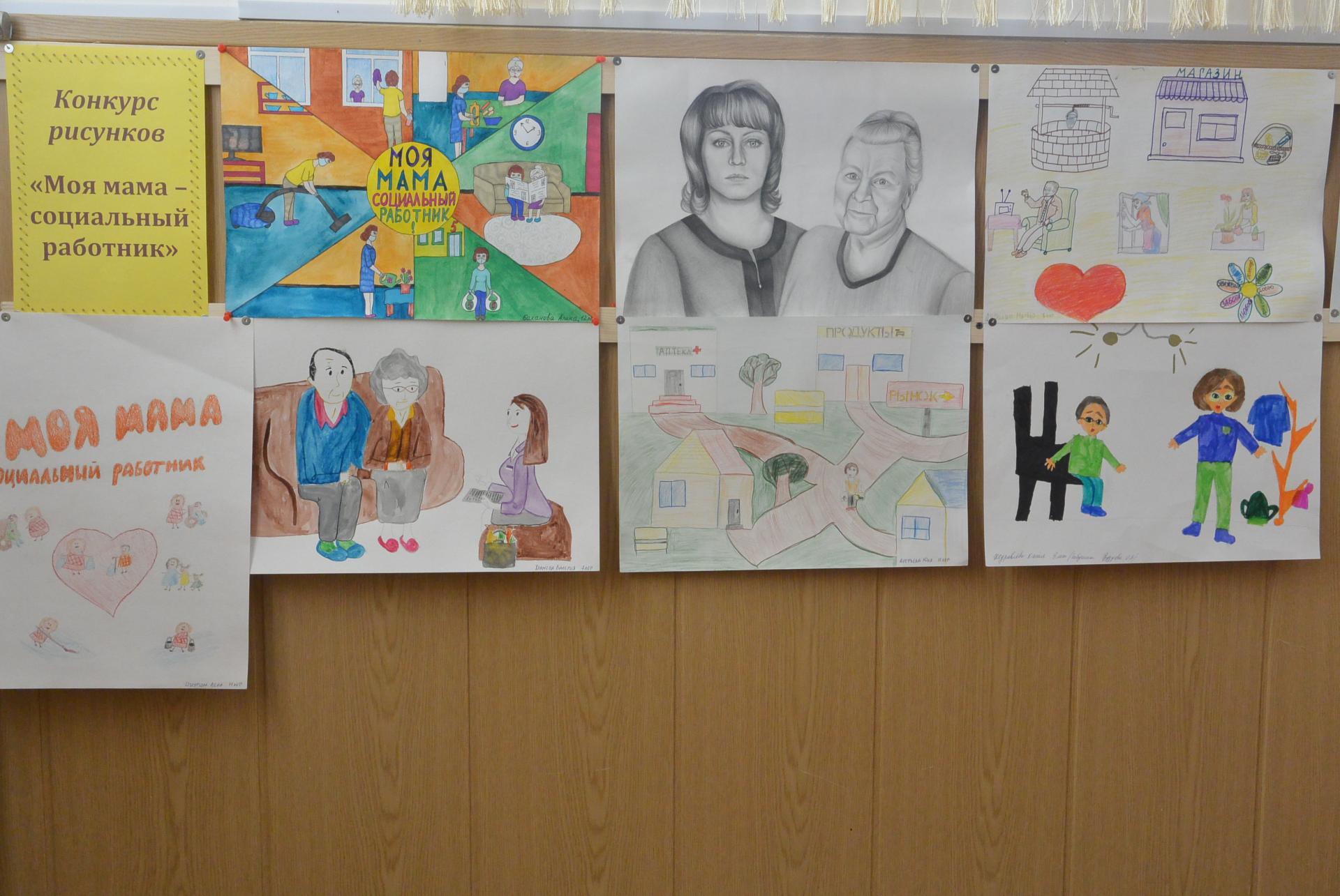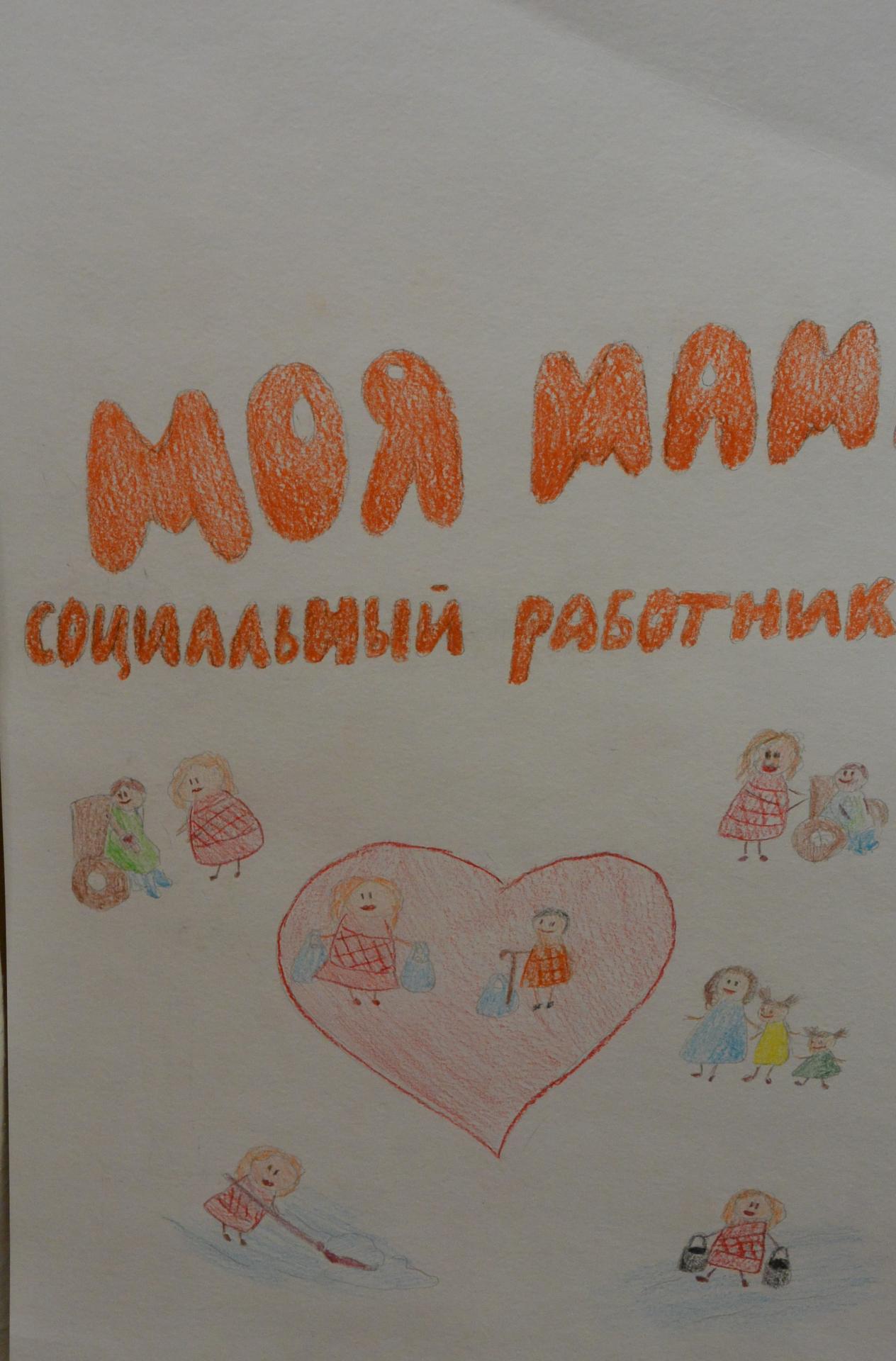 Среди детей сотрудников ГБУСО ВО «Меленковский комплексный центр социального обслуживания населения» прошёл конкурс рисунков «Моя мама – социальный работник». Каждый ребенок знает, что социальный работник помогает людям жить, верить в добро, ведь изо дня в день он подаёт руку помощи сотням людей, открывает нуждающимся сердца и души для того, чтобы прогнать одиночество и вселить в них надежду и веру.