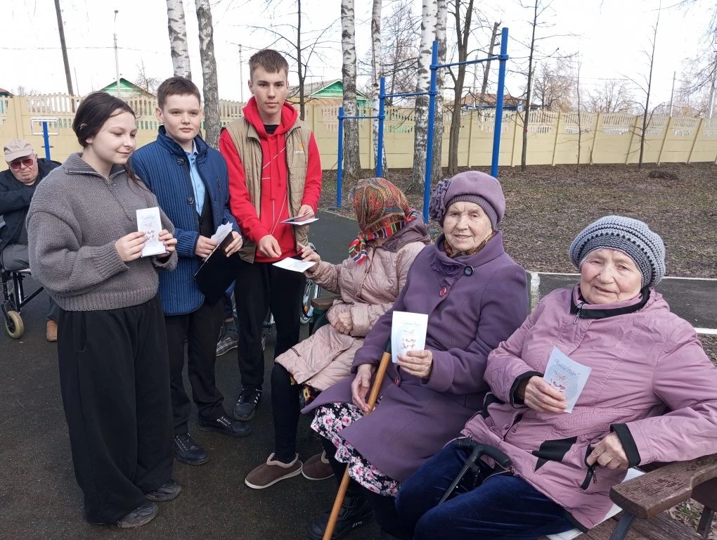 В рамках встречи школьники читали стихи о Пасхе, весне и обновлении природы, а также рассказывали об истории и традициях этого светлого праздника. Пожилые люди с интересом слушали юных чтецов, делились своими воспоминаниями и впечатлениями. В завершении мероприятия ученики раздали получателям социальных услуг открытки со стихотворениями, которые они сделали с уважением и любовью к старшему поколению.