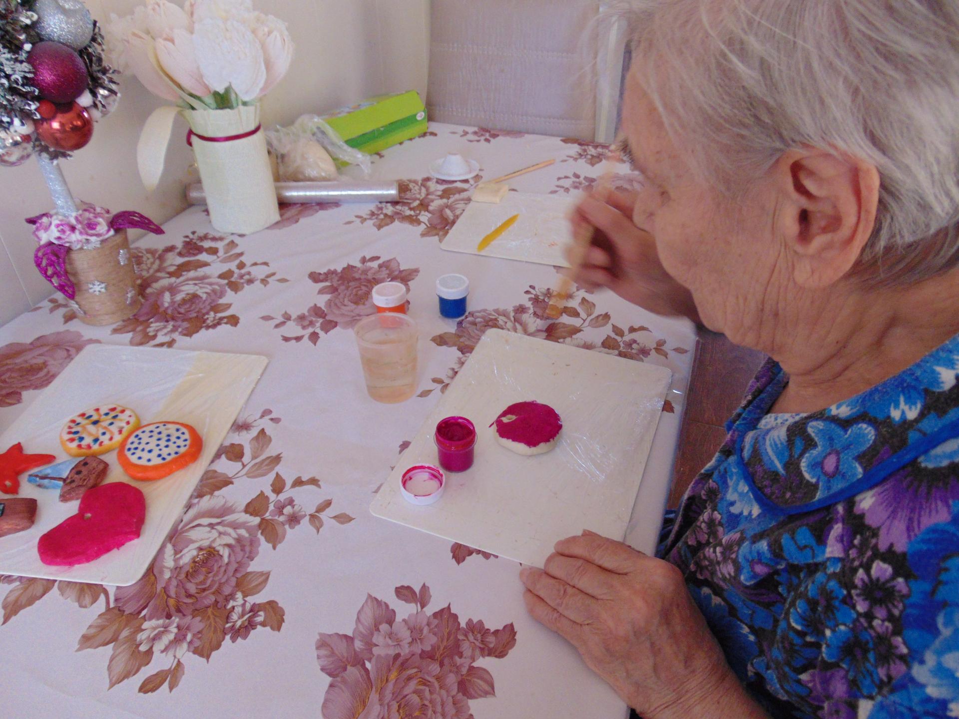 Прекрасной порой праздничной и волшебной является Новый год, к которому все люди готовят сувениры и подарки для друзей и близких. Не обязательно делать покупки в магазине, необычные подарки можно приготовить самостоятельно из подручных средств, например из соленого теста. Вот и в Тургеневском отделении милосердия получатели социальных услуг решили сделать сувениры для украшения на елку. Лепка из теста требует внимания, аккуратности и творческого проявления своей фантазии, но результат того стоит… Творческие занятия помогают пожилым людям улучшить свое психоэмоциональное состояние, раскрыть творческие возможности, повысить их интерес к жизни и окружающей действительности.