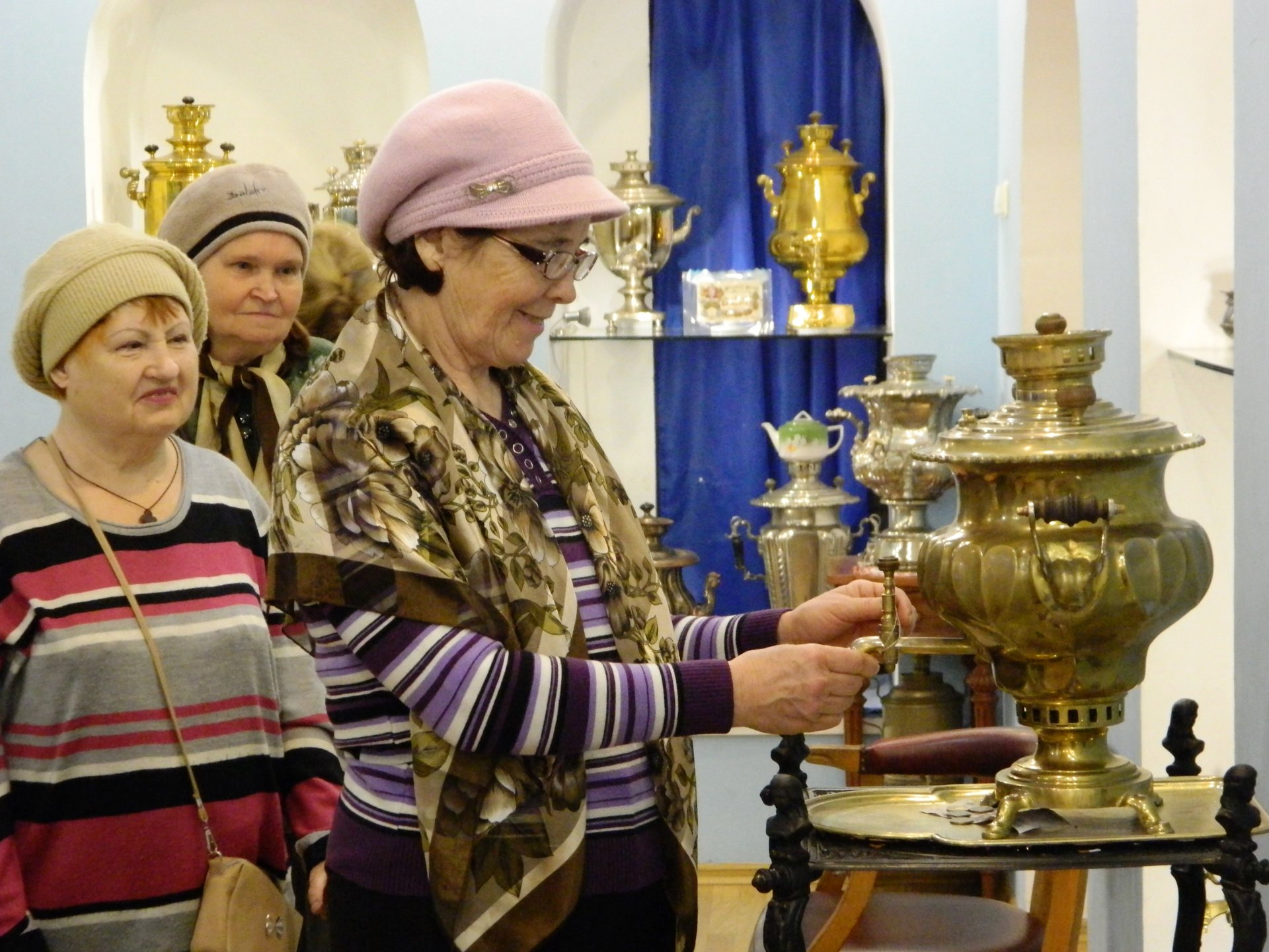 В «Музее самоваров» представлена уникальная коллекция самоваров, изготовленных из различных материалов (медь, латунь, серебро), разных по форме (желудь, шар, кубок, яйцо, ваза, репка) и величине. Экскурсанты были поражены разнообразием и совершенством форм, красотой и изысканностью каждого самовара.