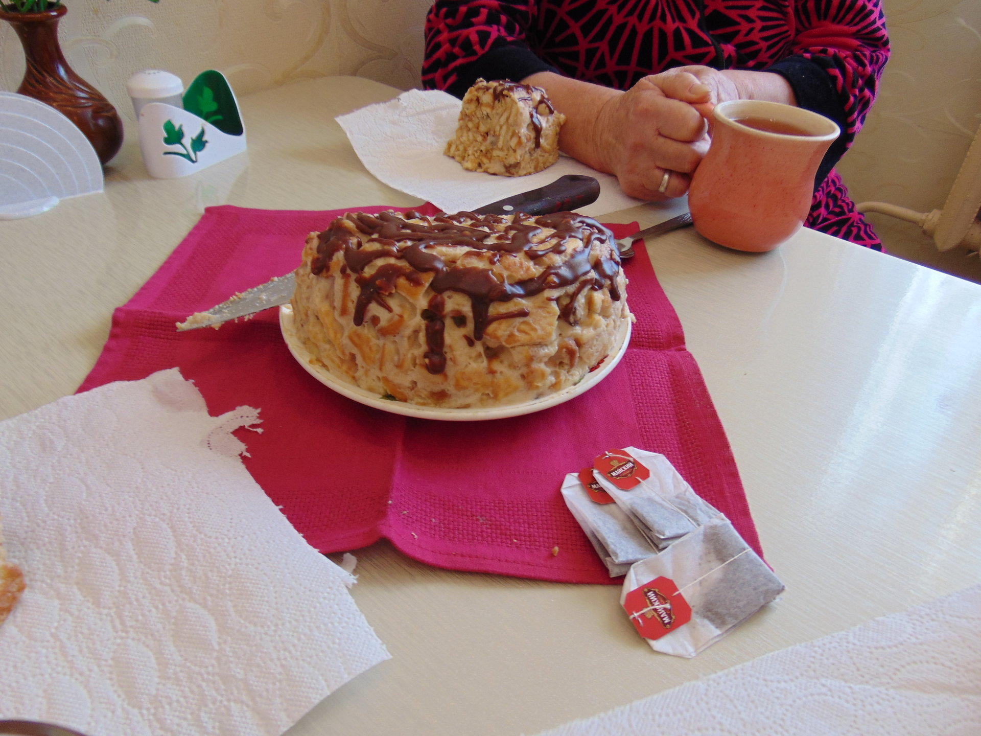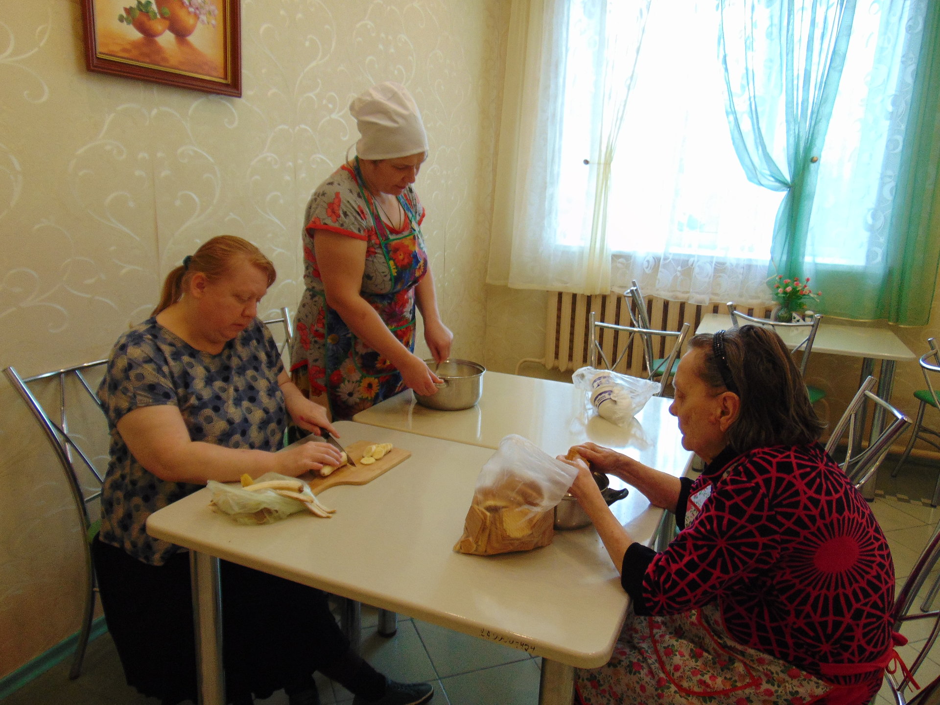 17 октября в Тургеневском отделении милосердия состоялся кулинарный мастер-класс по противлению торта без выпечки. Как известно, ароматный и вкусный торт к чаю очень поднимает настроение. Торт без выпечки — простое решение сложной задачи. Участники мастер класса впервые готовили по такому рецепту, и всем очень понравилось. Нужно всего лишь поломать печенье, добавить сметану, сахар, фрукты, хорошенько перемешать и поставить в холодильник, чтоб торт настоялся. На следующий день все участники попили чай с приготовленным тортом за дружеской беседой! Результат нашего творения получился красивым, вкусным и приготовленным своими руками.