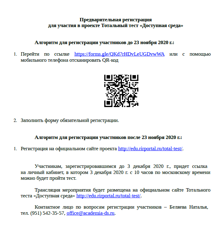 Регистрация для участия в проекте Тотальный тест "Доступная среда":